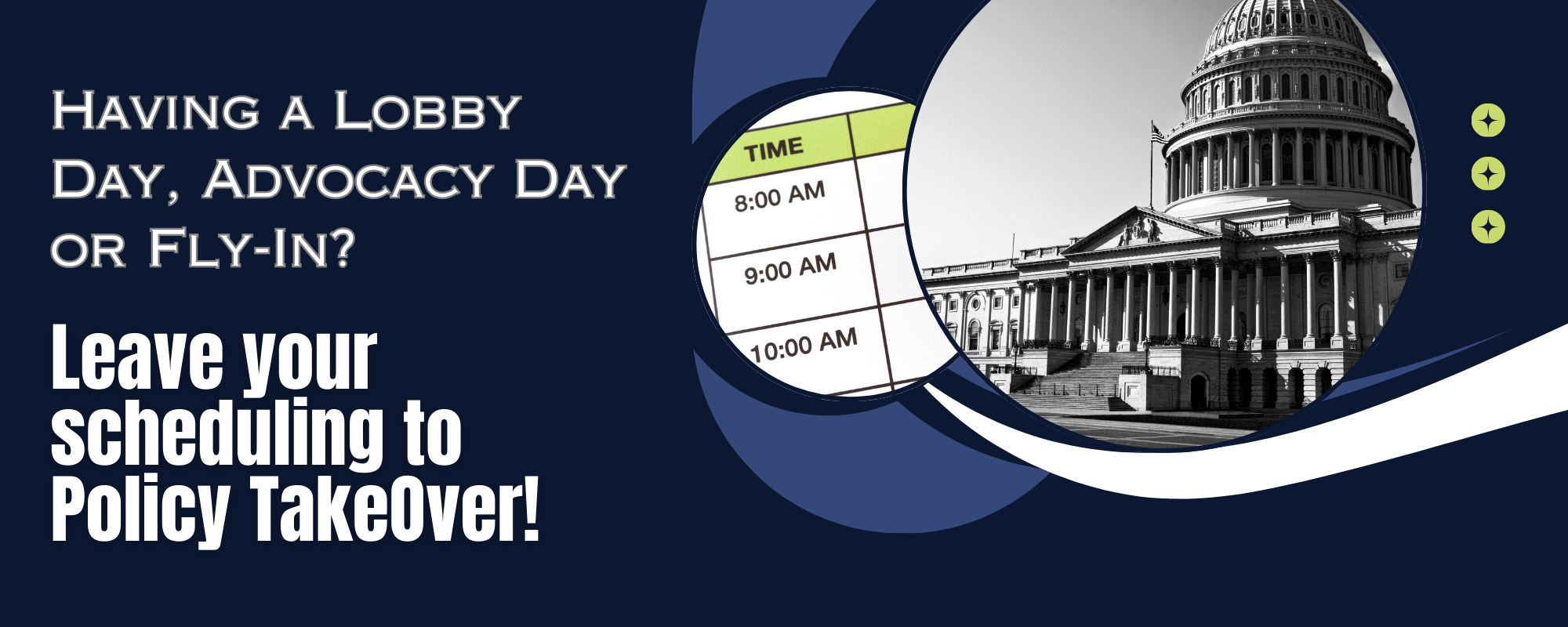 Policy TakeOver works diligently to schedule your Advocacy Day meetings. However, we cannot guarantee a meeting with your elected official or their staff.